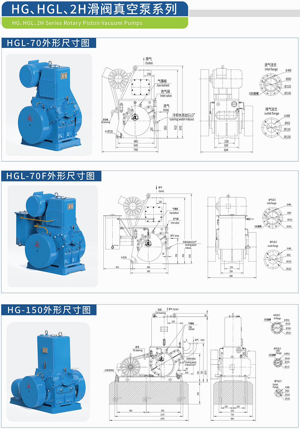 HG、HGL、2H Series Rotary Piston Vacuum Pumps / HG、HGL、2H Series
